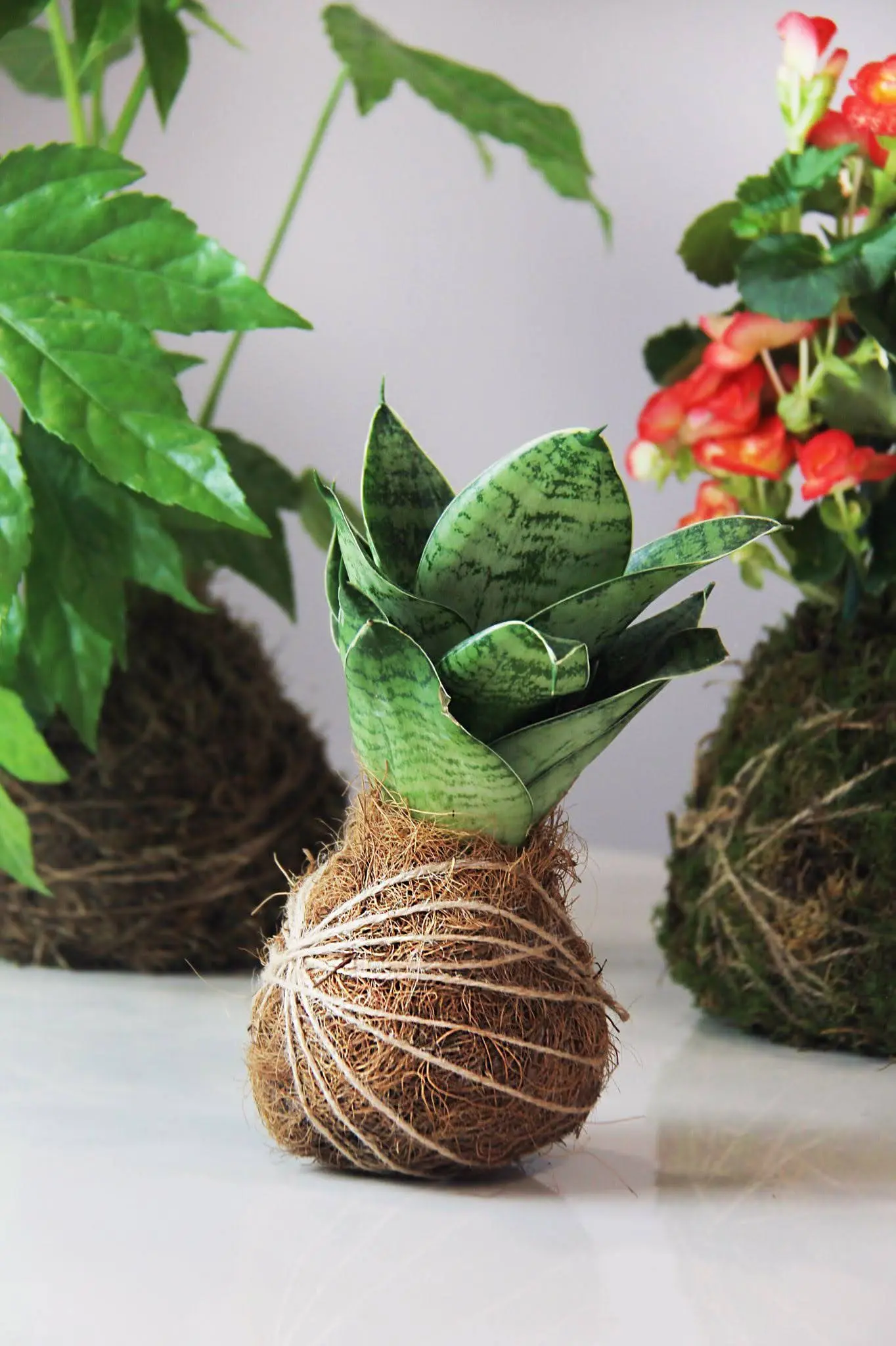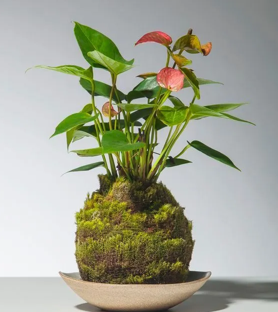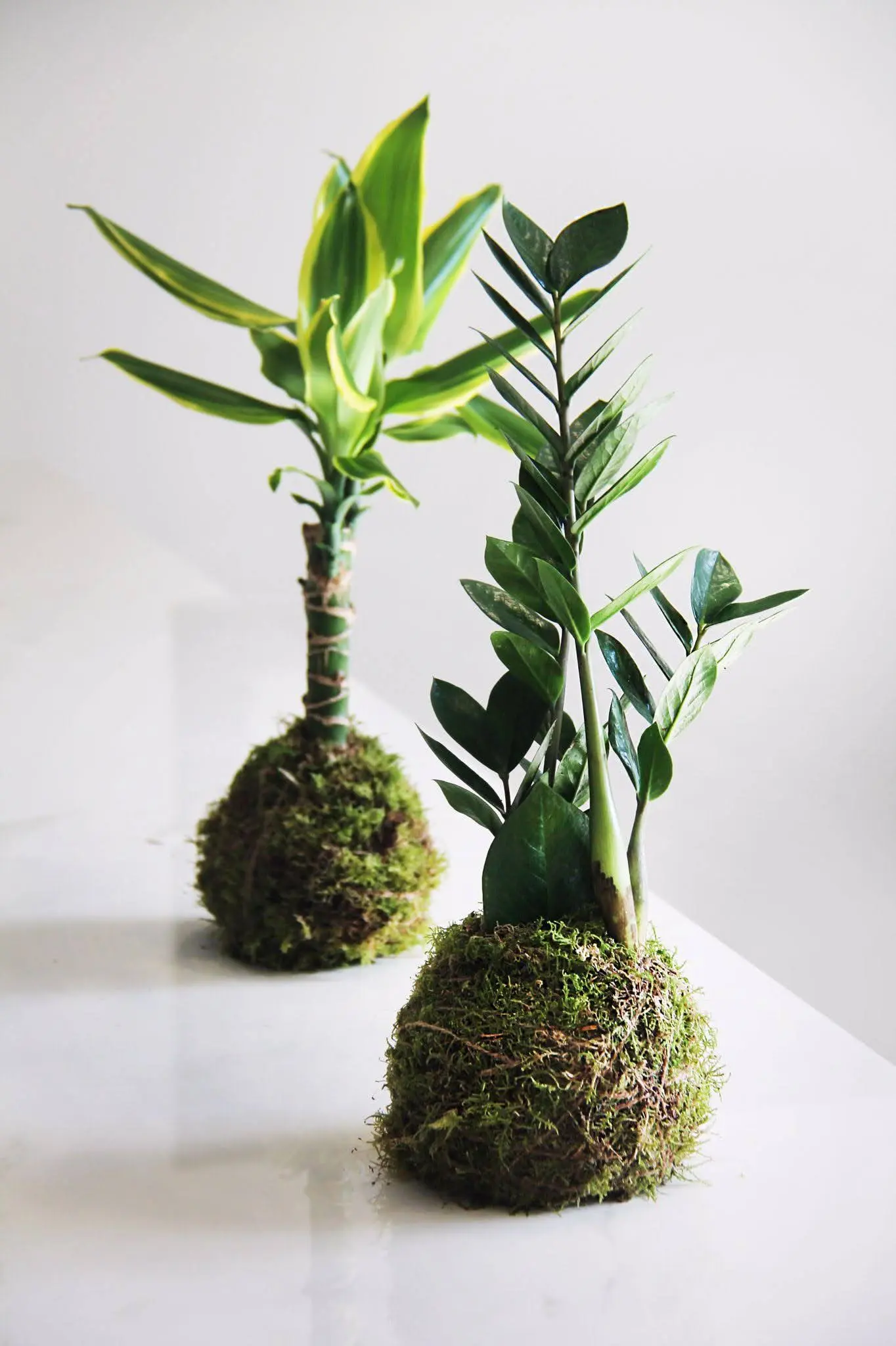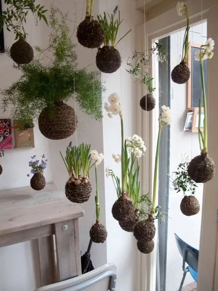 ✔️Son una técnica japonesa de jardinería, donde las plantas crecen en una esfera de musgo natural (o fibra de