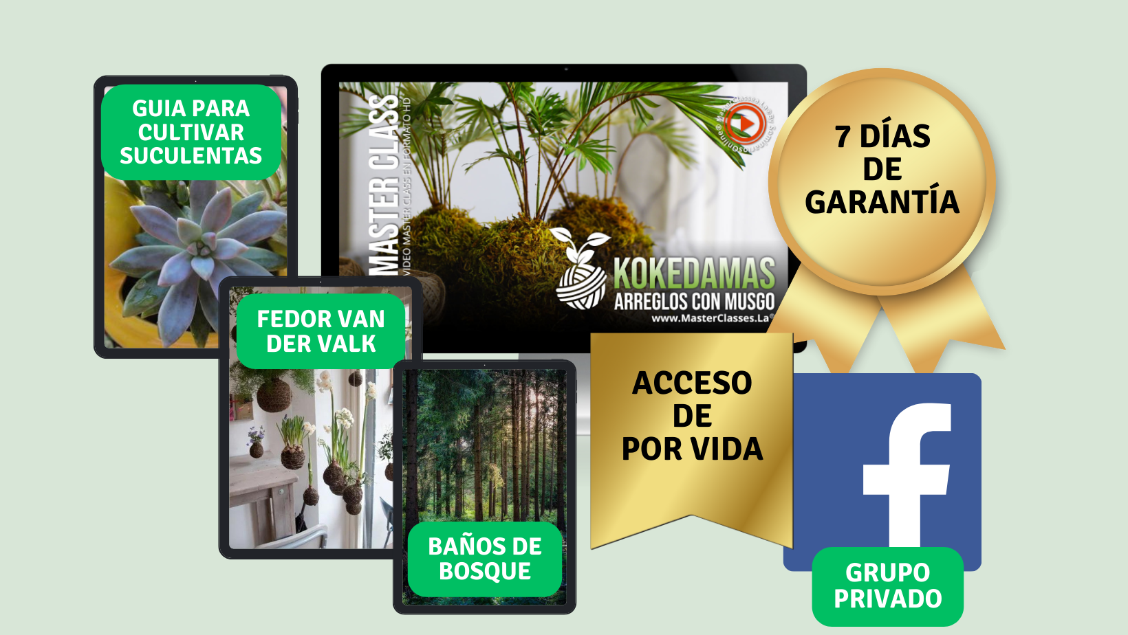 ✔️ Videoclases en formato FULL HD para que puedas crear tus propias kokedamas y terrarios