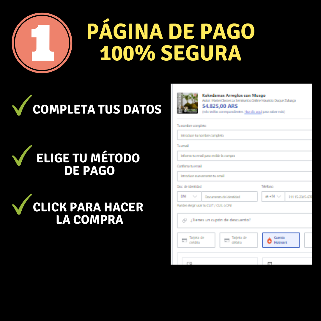 Al dar clic en el botón «registrarte» (inscribirte, según el botón) serás redirigido a una página donde aparecerán todos los métodos de pago que aceptamos