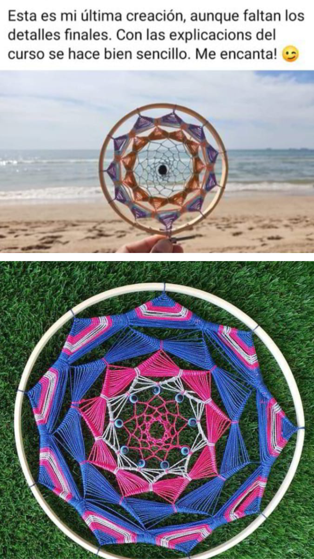 Sin dudas este curso es lo que estaba buscando. Tenía algo de experiencia tejiendo atrapasueños siguiendo algunos tutoriales pero no me salían como yo quería. En el curso esta todo perfectamente explicado, con muchos tips muy útiles! Ya estoy por iniciar mi emprendimiento y la clase para calcular el valor de cada diseño es muy buena y me sirvió un montón!